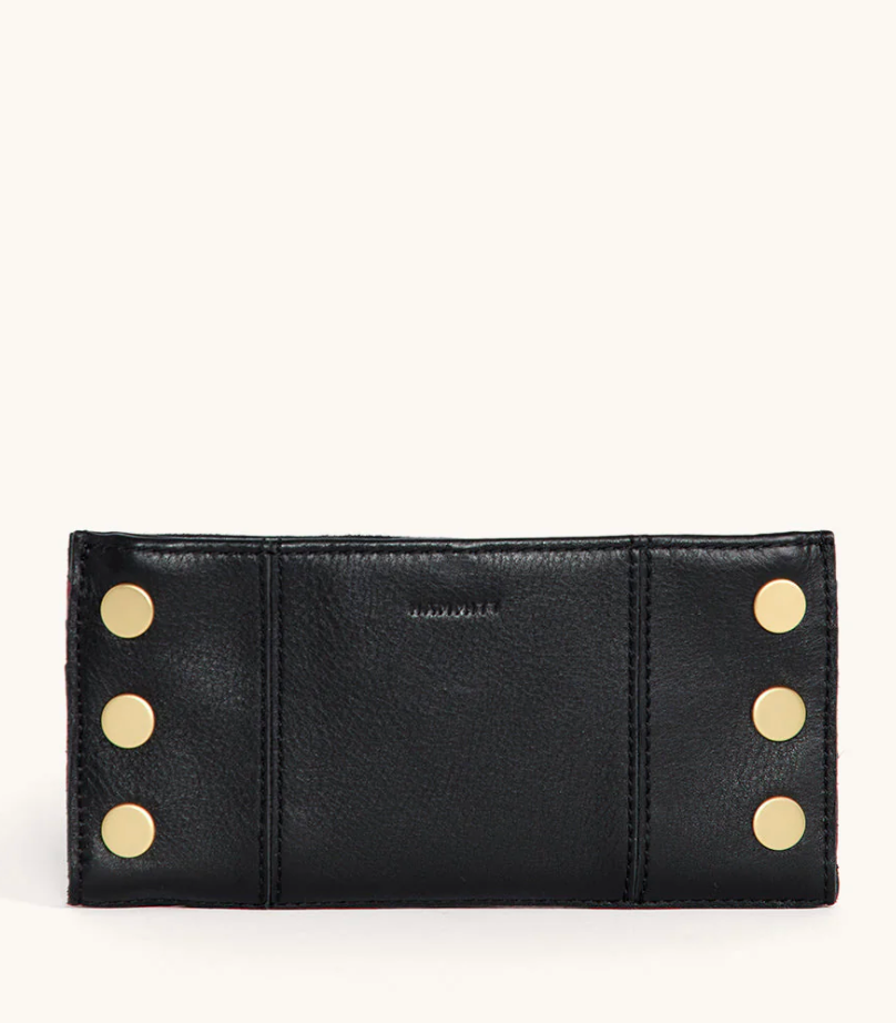 Because you're a VIP. Our all-time best-seller, this VIP in buttery black leather features an optional strap and elevated brushed gold rivets. Plus, you'll find a subtle strip of red peeking out along the bag's back seam. We're classy like that.