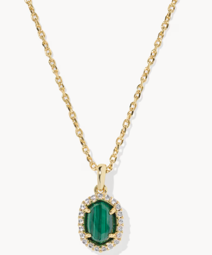 Metal 14k Yellow Gold Over Brass Material Green Malachite, White CZ Closure Lobster Clasp W/ Single Adjustable Slider Bead Size 16" Chain With 3" Extender, 0.46"L X 0.31"W Pendant   Due to the one-of-a-kind nature...