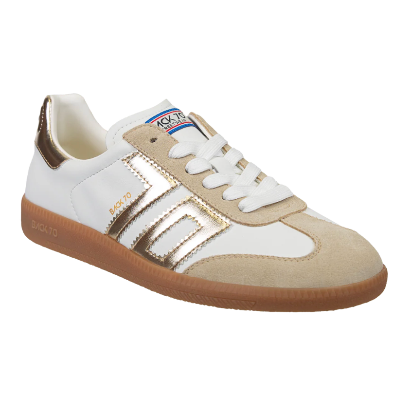 It's time to go places. These platform sneakers feature Back 70's signature vintage style and bold '70' emblem infused with classic soccer-sneaker details. These essentials are hand crafted in small batches with genuine leather uppers, suede and leather details. The gummy rubber sole gives these kicks an updated aesthetic as well as a pretty sweet tread. Update your street style in Denver by Back 70.