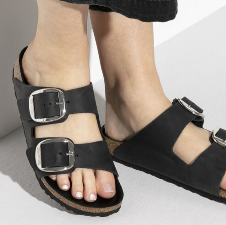The legendary two-strap design from BIRKENSTOCK with an amplified buckle accent - the Arizona Big Buckle. This version features a large, elegant buckle creating a bold yet minimalist design. Shown in nubuck leather.