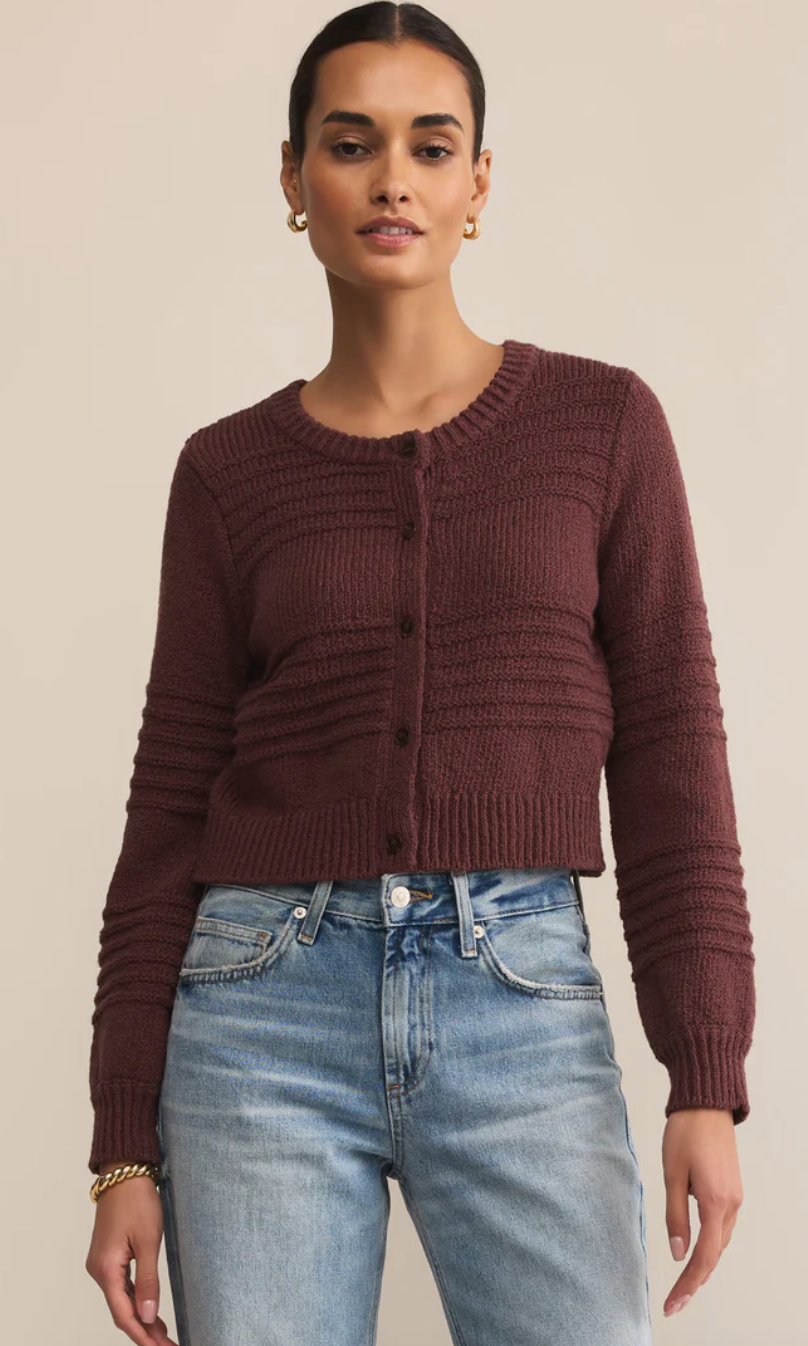 Dimensional tonal stripes and subtle balloon sleeves give this lightweight cardigan just the right amount of texture. It's that versatile layer you’ll throw on from your morning coffee run to weekend errands.