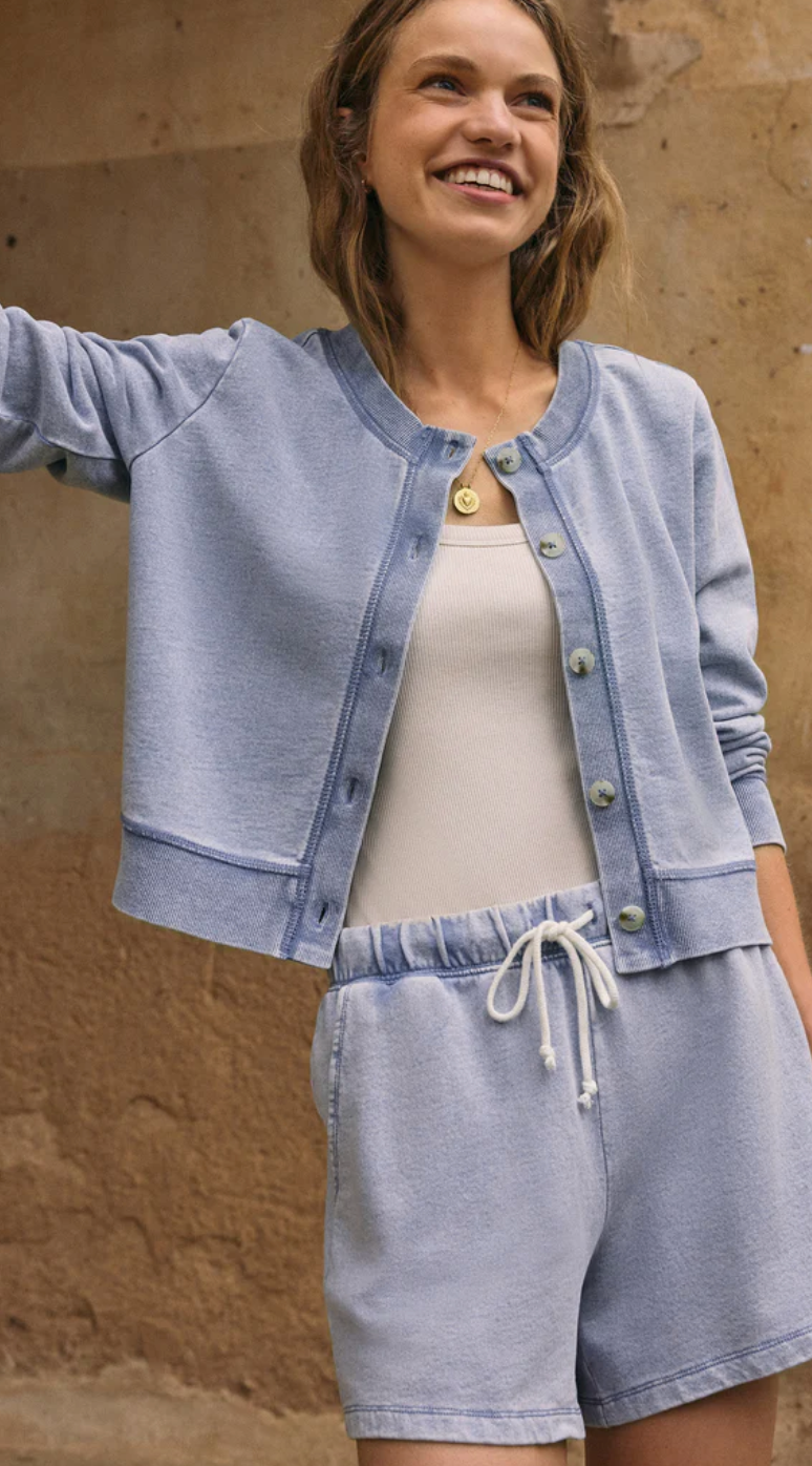 Soft yet structured, this relaxed cardigan is made from knit denim French terry, featuring a versatile crew neckline and easy-going silhouette. So comfortable, it just may become your new favorite laid-back layer.