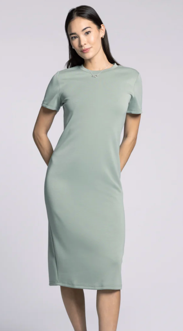 This easy pull on tee shirt dress looks cute without even trying, featuring in a midi length and crew neckline.