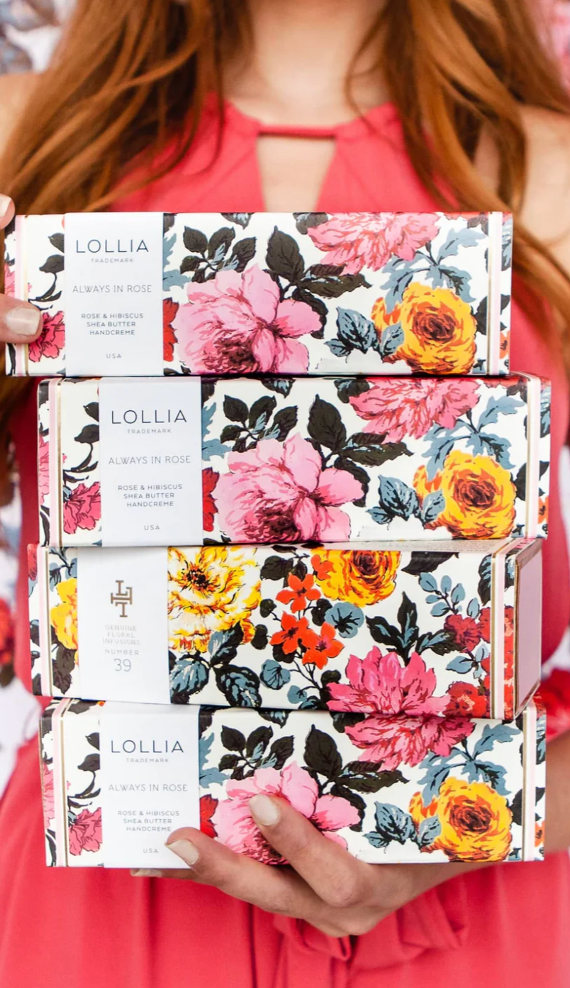 Lollia's luxurious Always in Rose Petite Treat Handcreme, brimming with moisture-rich extracts, is just the right size to tuck away when you’re on the go. Soothing Macadamia Nut and Avocado Oils are blended to comfort skin as hydrating extracts of Aloe and Shea Butter lightly moisturize. Delicate infusions of blushing Rose, Hibiscus & warm Amber leave skin deliciously fresh.