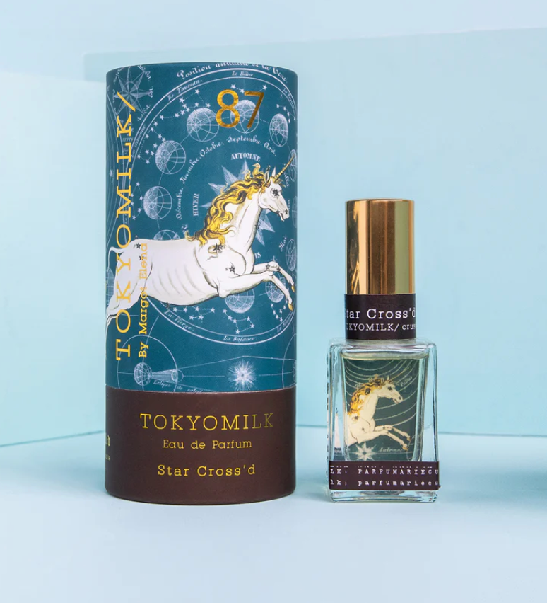 A decadently different collection of brilliantly paired fragrance notes housed in an alluring glass bottle decorated with a unicorn constellation.